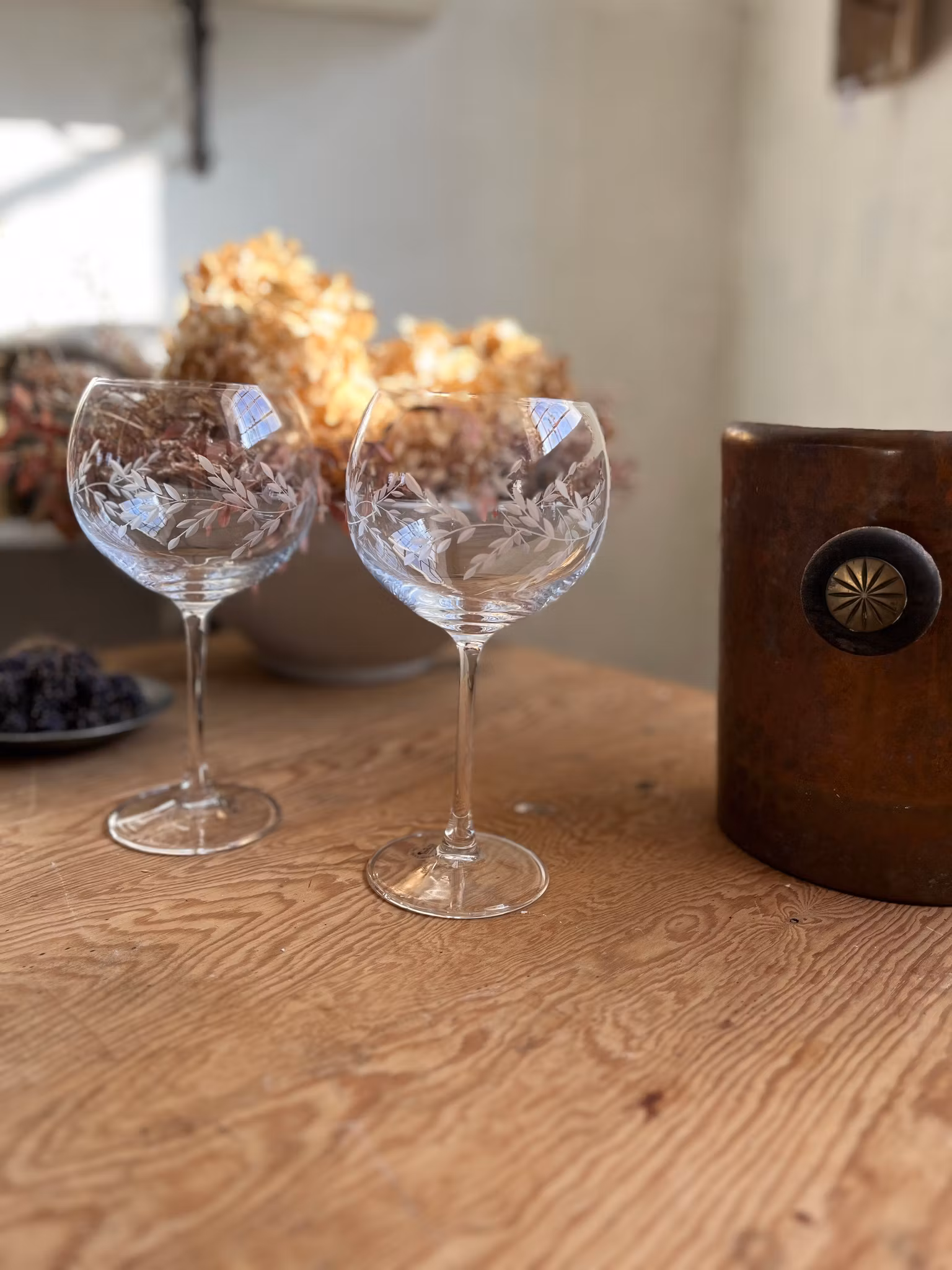 Vinglas par 299 SEK I lager Lägg i korgen Dela Information Vinglas parMått: H 22,2* B 11 * D 11 cmMaterial: GlasSäljs i par.Vackert kupat vinglas i etsat mönster. Går att diska i maskin.
