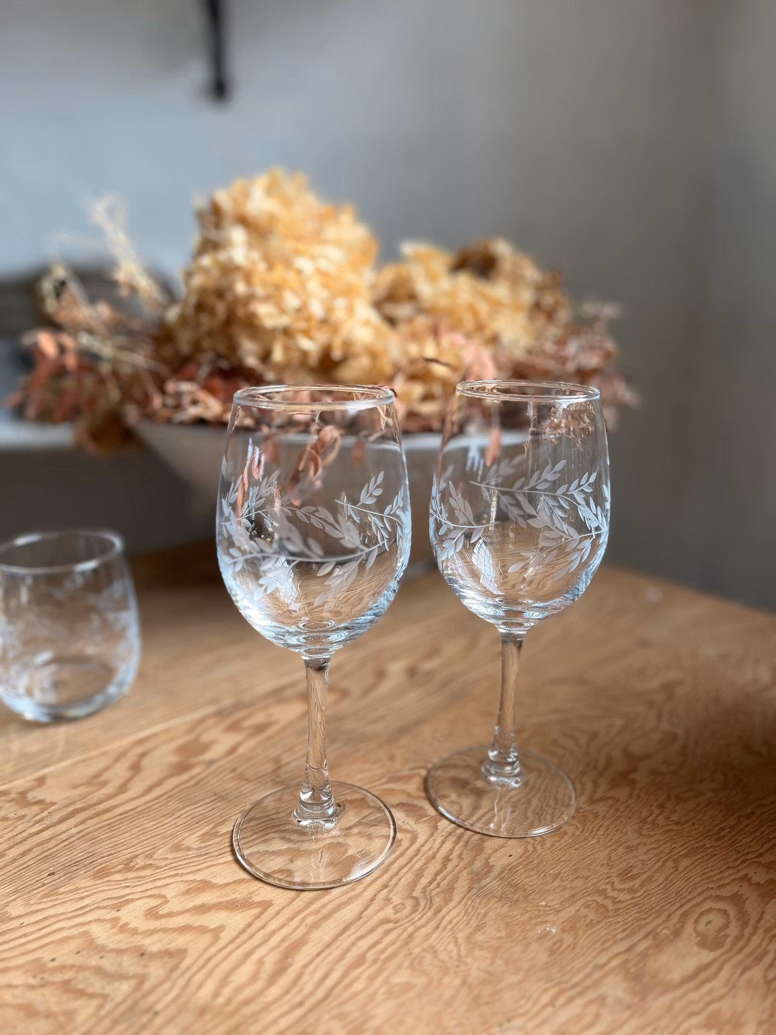 Vinglas par 289 SEK I lager Lägg i korgen Dela Information Vinglas parMått: H 20,5 * B 7,8 * D 7,8 cmMaterial: GlasVackert glas med etsat mönster.Går att diska i maskin.